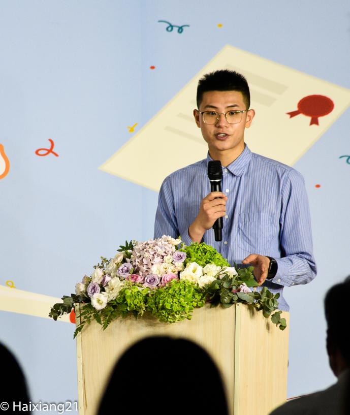 典礼还特别邀请了学院第一届即2016届毕业生严俊涛(Evan)专程回母校,为