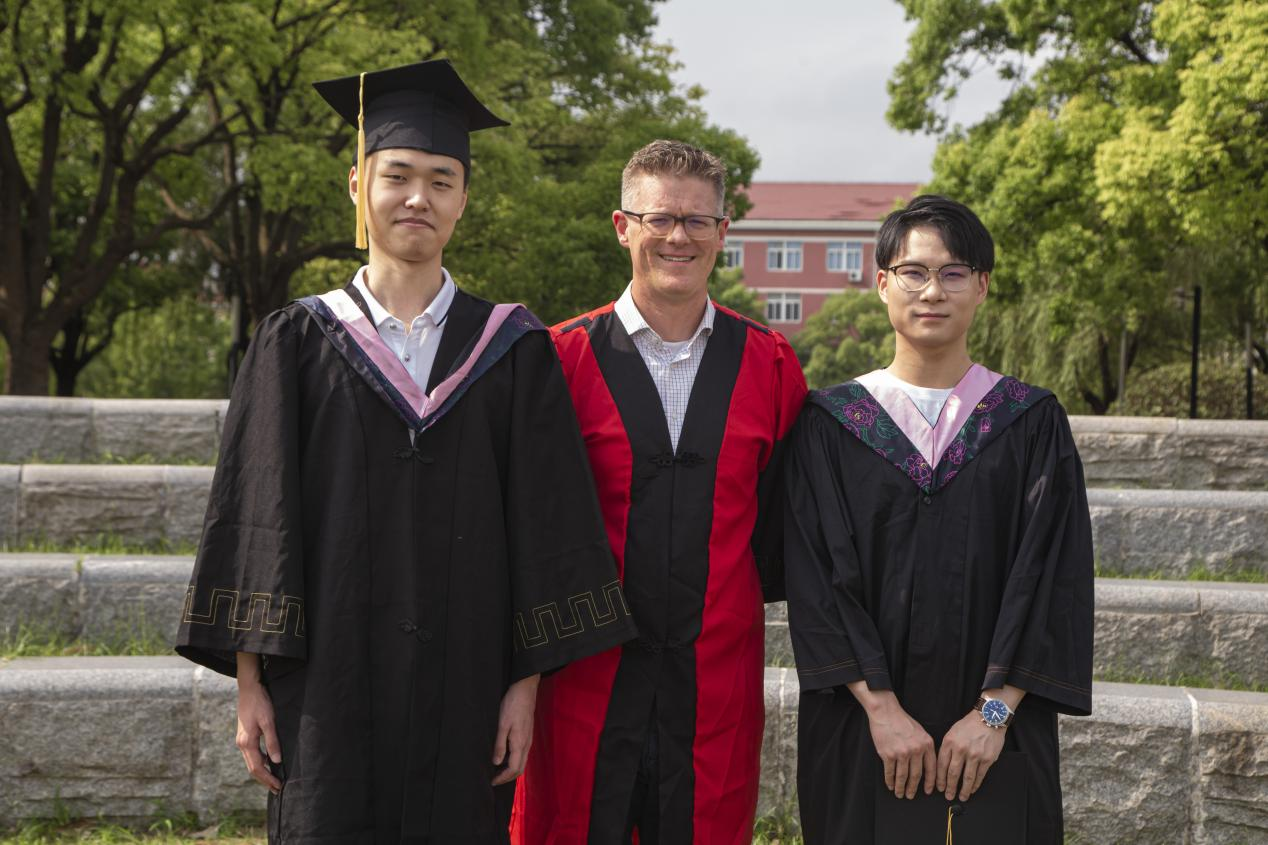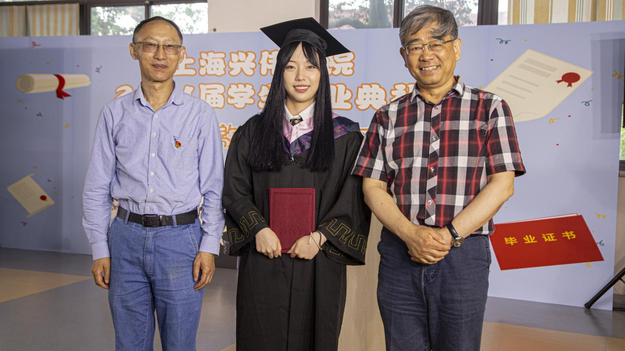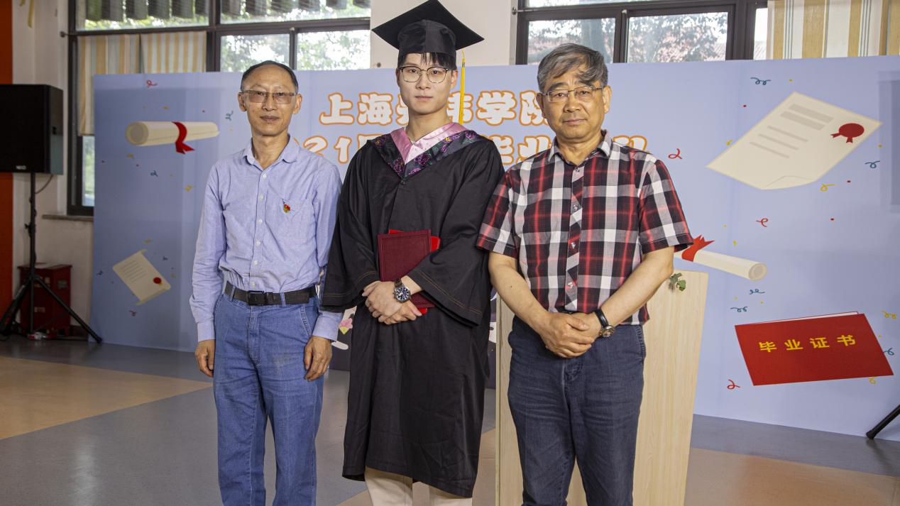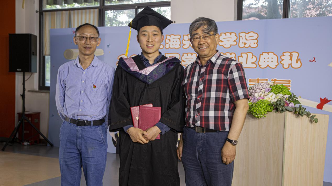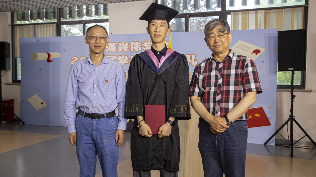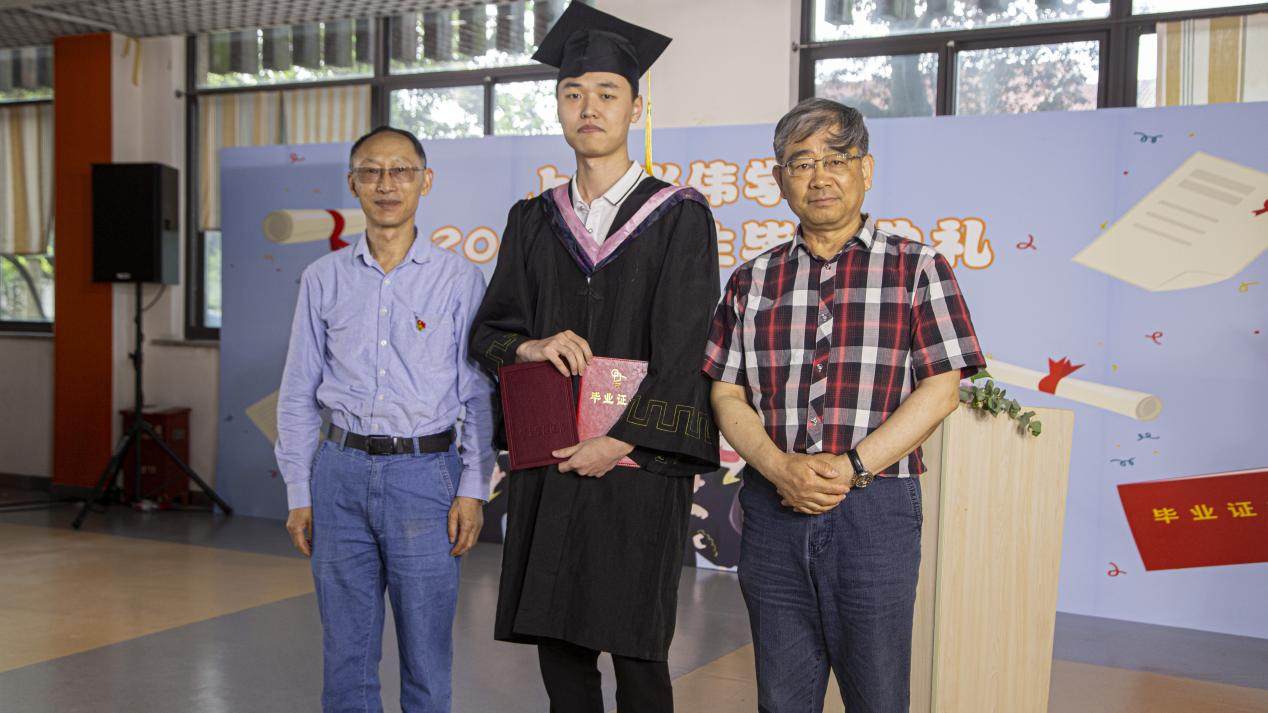 俞光虹校长、王勇教授为陈浩乐颁发毕业证书和学位证书