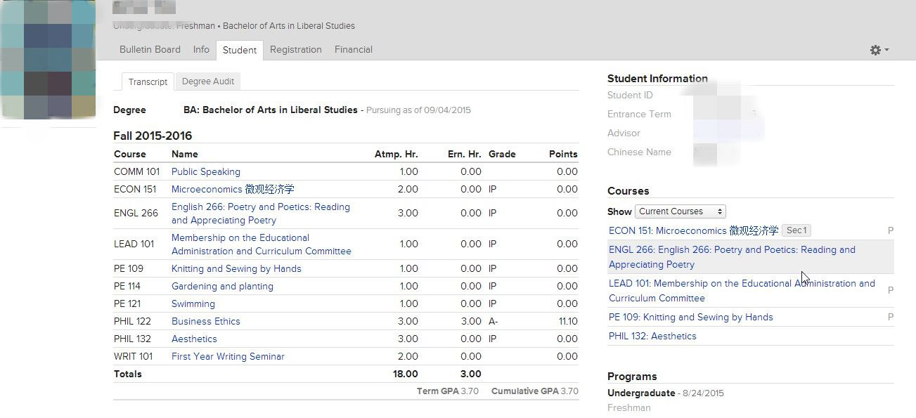 上海华体网页版登录入口采用populi选课系统,便于学生自主选课,也可以对教授的教学提出自己的意见、建议和愿景,使老师能够真正了解学生的需要和想法。